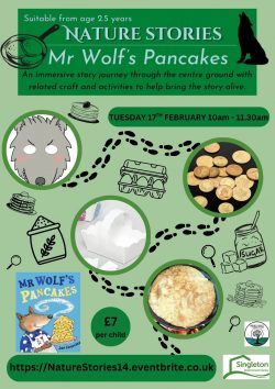An immersive storytelling experience exploring the book Mr Wolf’s Pancakes. We’ll be completing crafts and activities related to different parts of the story as we travel around the centre grounds, including cooking pancakes over the firepit.
