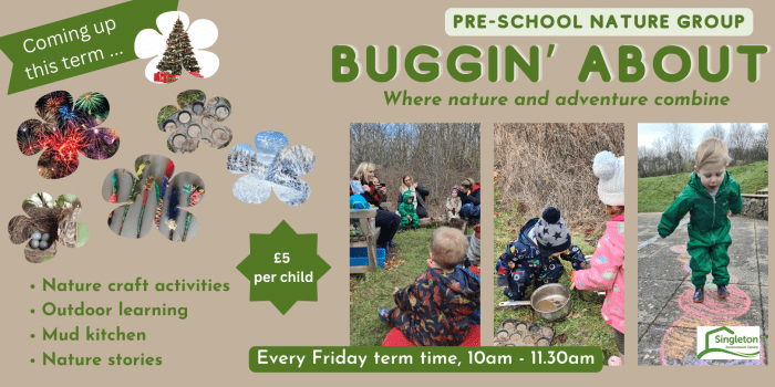 Our pre-school nature group runs every Friday in term time with a different theme every week. Reserve your place online and pay at the start of the session. There is plenty of outdoor fun activities, exploration and nature craft for you and your little one to enjoy.