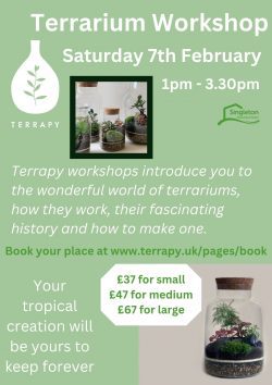 Learn about the wonderful world of Terrariums, including their history, before building your own tropical creation to keep forever. All tuition and resources included.